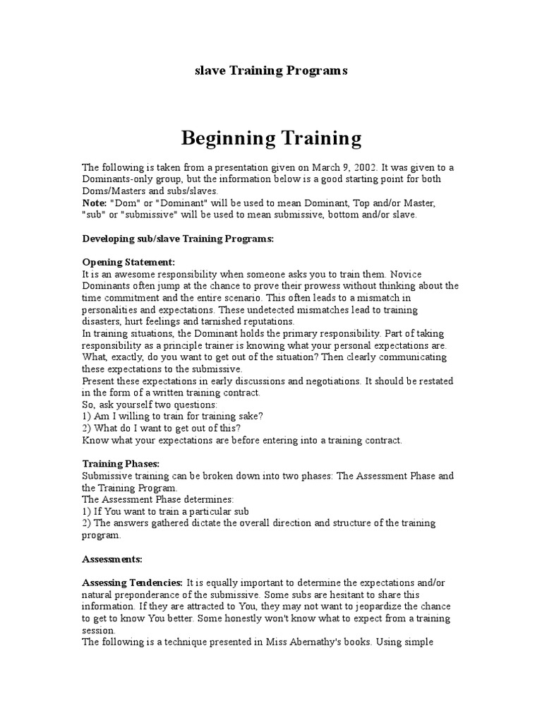 Training implies there are techniques and skills to be attained . Dominants actually need more specific skill training than a submissive, because no one should just grab up a flogger, a coil of rope, a pair of nipple clips, etc . and start using them on someone without taking some time to learn how to use those things properly .