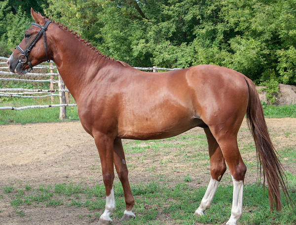 Фото лошади тракененской породы гнедой масти