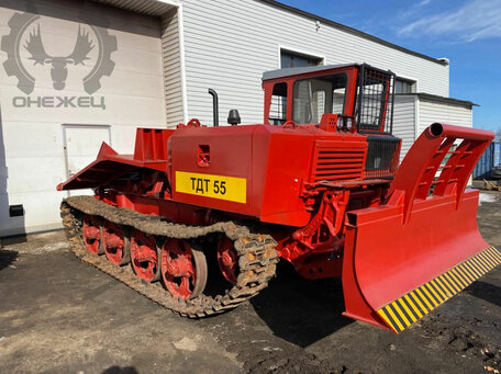 ТДТ- 55 - трактор на гусеничном ходу . Предназначен для транспортировки, штабелирования леса крупного и среднего размера . Спроектирован трактор специально для работы в сложных условиях . Начал выпускаться в 1966 году на ОТЗ (Онежский тракторный завод) .