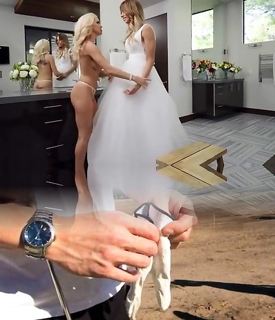 Транс невеста в свадебном наряде делает минет и дает в очко
