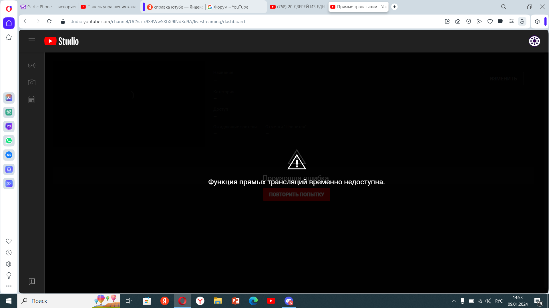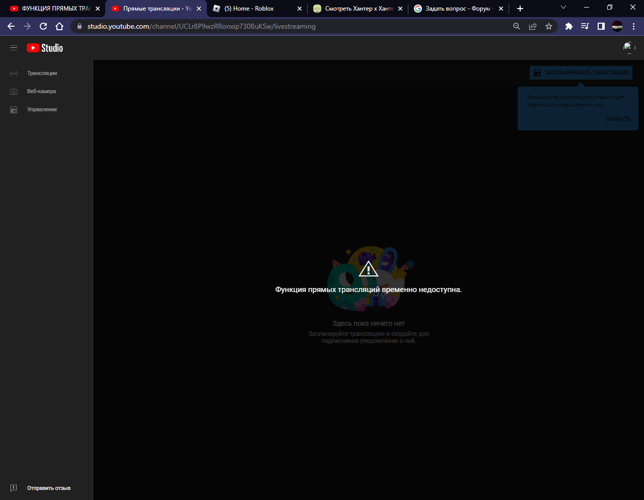Трансляция ютуб недоступна