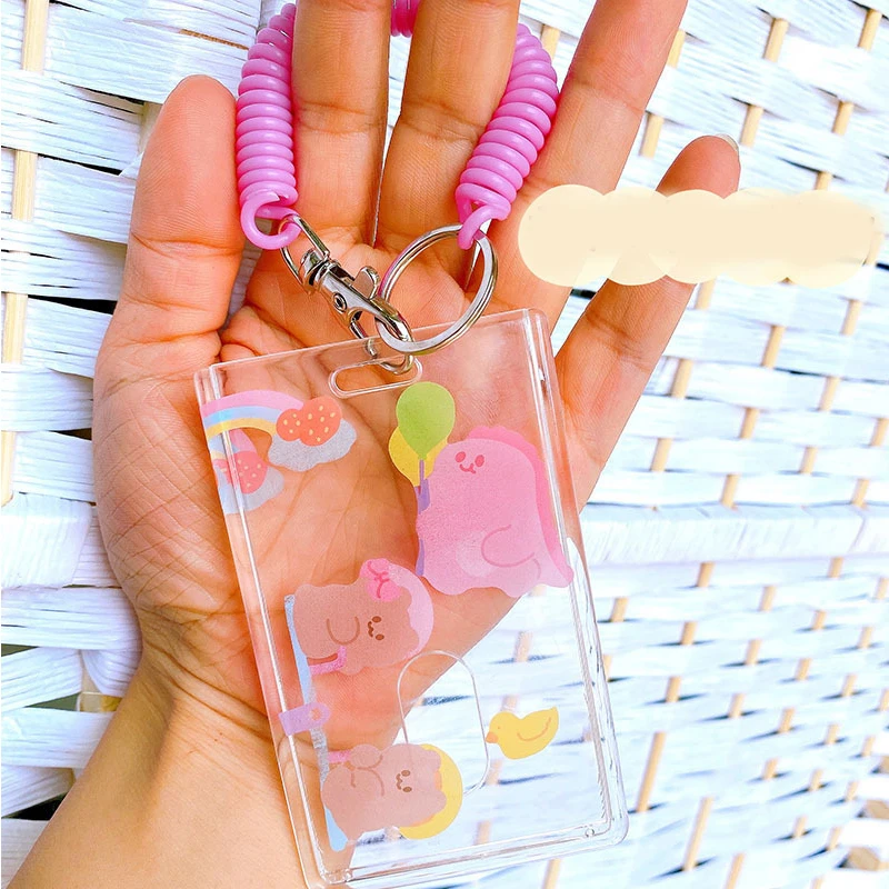 Transparent Candy Color Acrylic Card Holder Spring Bracelet Key Chain Work Card Student Card Pendant DIY Photo Frame Card Holder - Купить с бесплатной доставкой