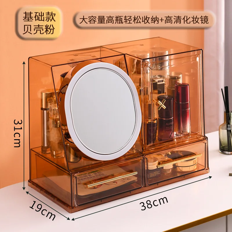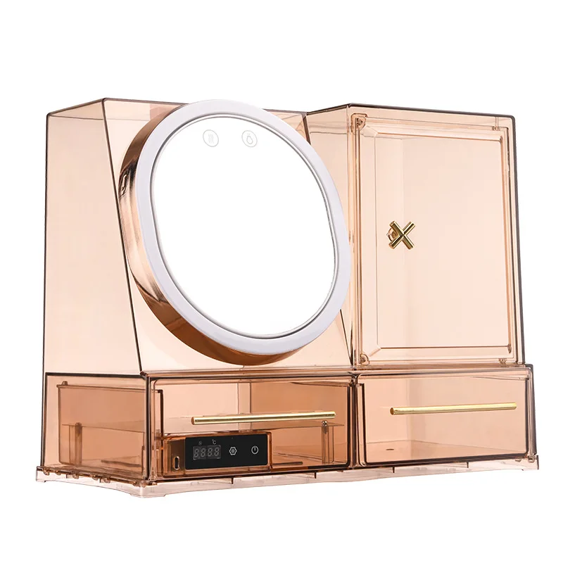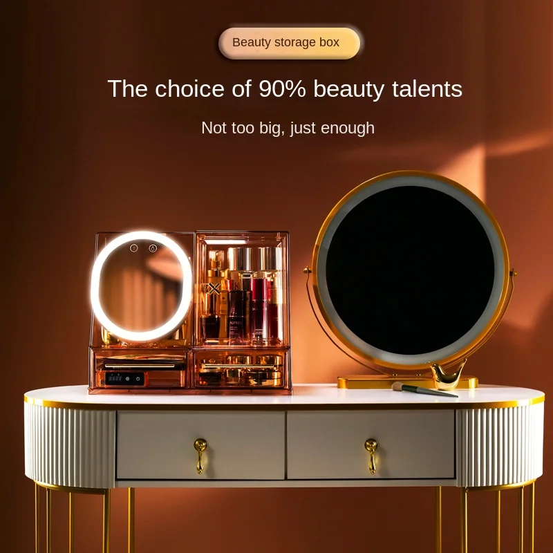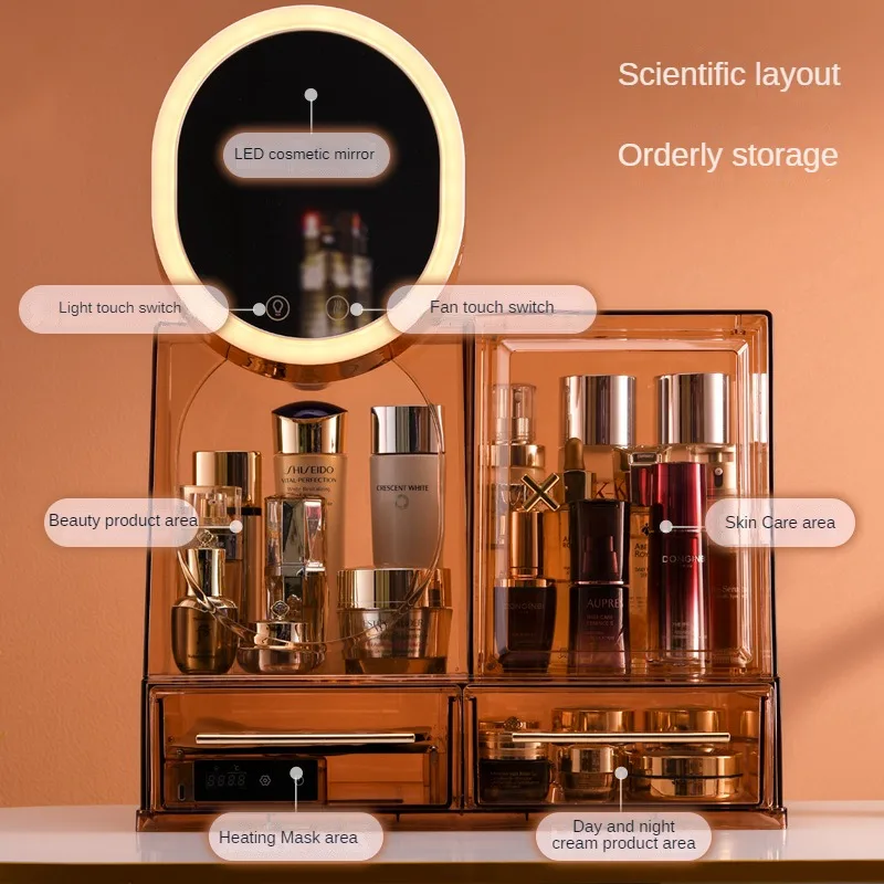 Transparent LED Cosmetic Storage Boxes Jewelry Makeup Organizer Dustproof Desktop Organizer Beauty Box with Mirror Mask Heating - Купить с бесплатной доставкой