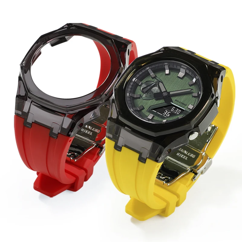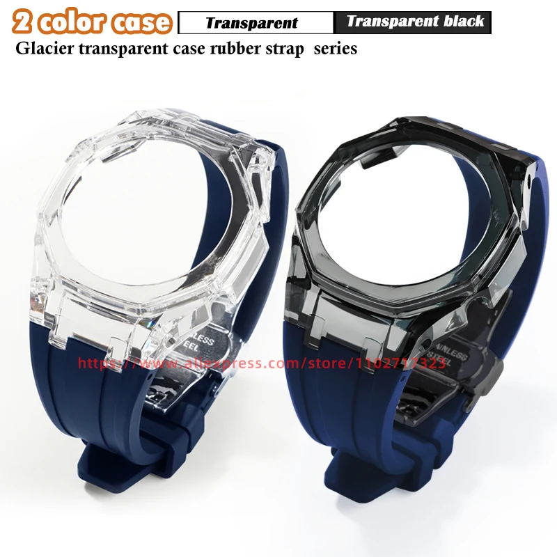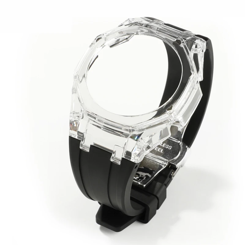 Transparent PC Case GA2100 GA2110 GAB2100 Mod Kit For Casioak Watch Bezel And Rubber Strap Band With Refit Accessories Tools - Купить с бесплатной доставкой
