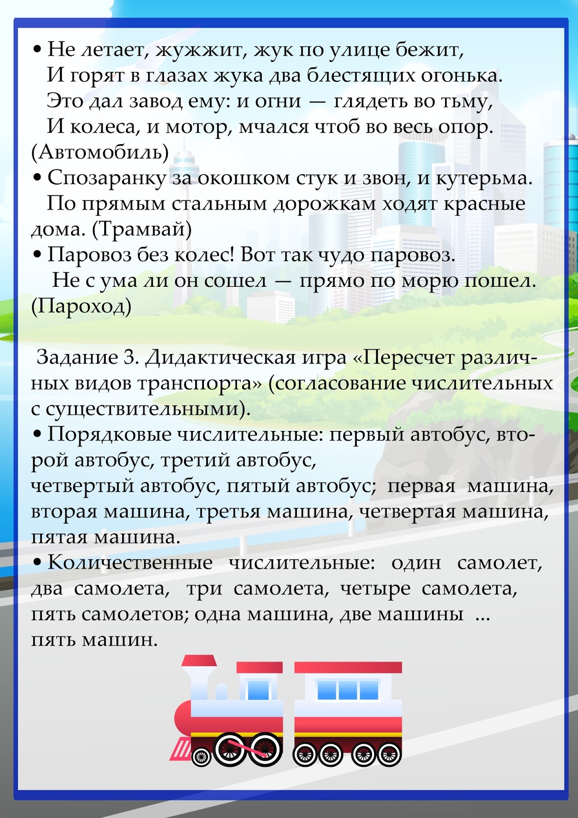 Транспорт домашнее задание логопеда