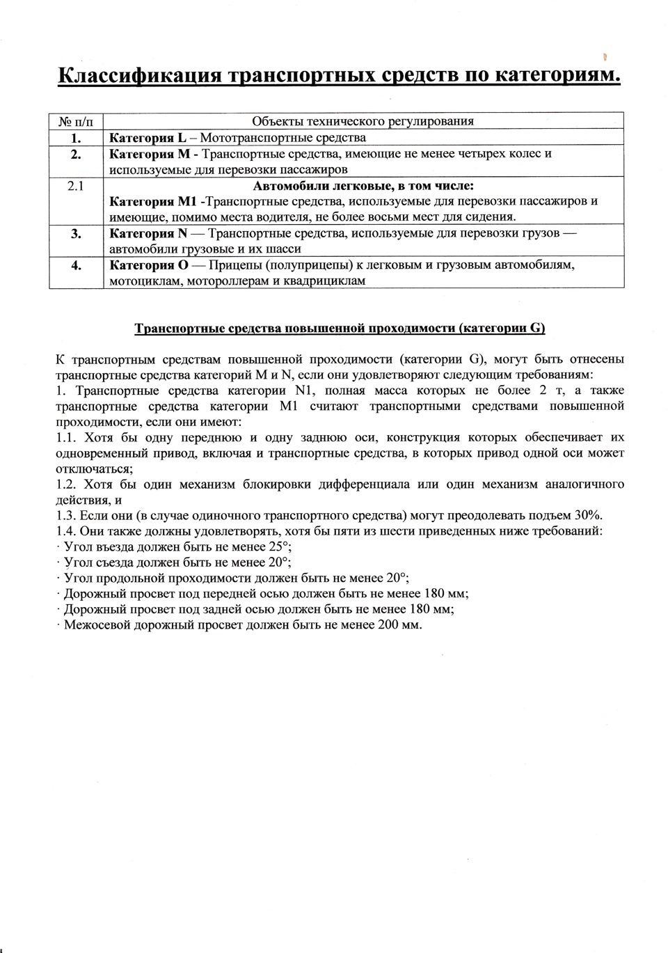 Транспортные средства категории g