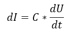 Бросок тока между двумя линиями зависит от их емкости, от величины dV/dt и определяется следующей формулой: