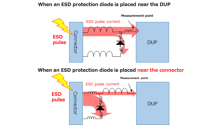 Чтобы обеспечить надежную ESD защиту, не достаточно просто выбрать правильный диод. Необходимо также правильно разместить его на плате и выполнить трассировку. В идеале, его следует разместить как можно ближе к разъему, но часто это бывает затруднительно.