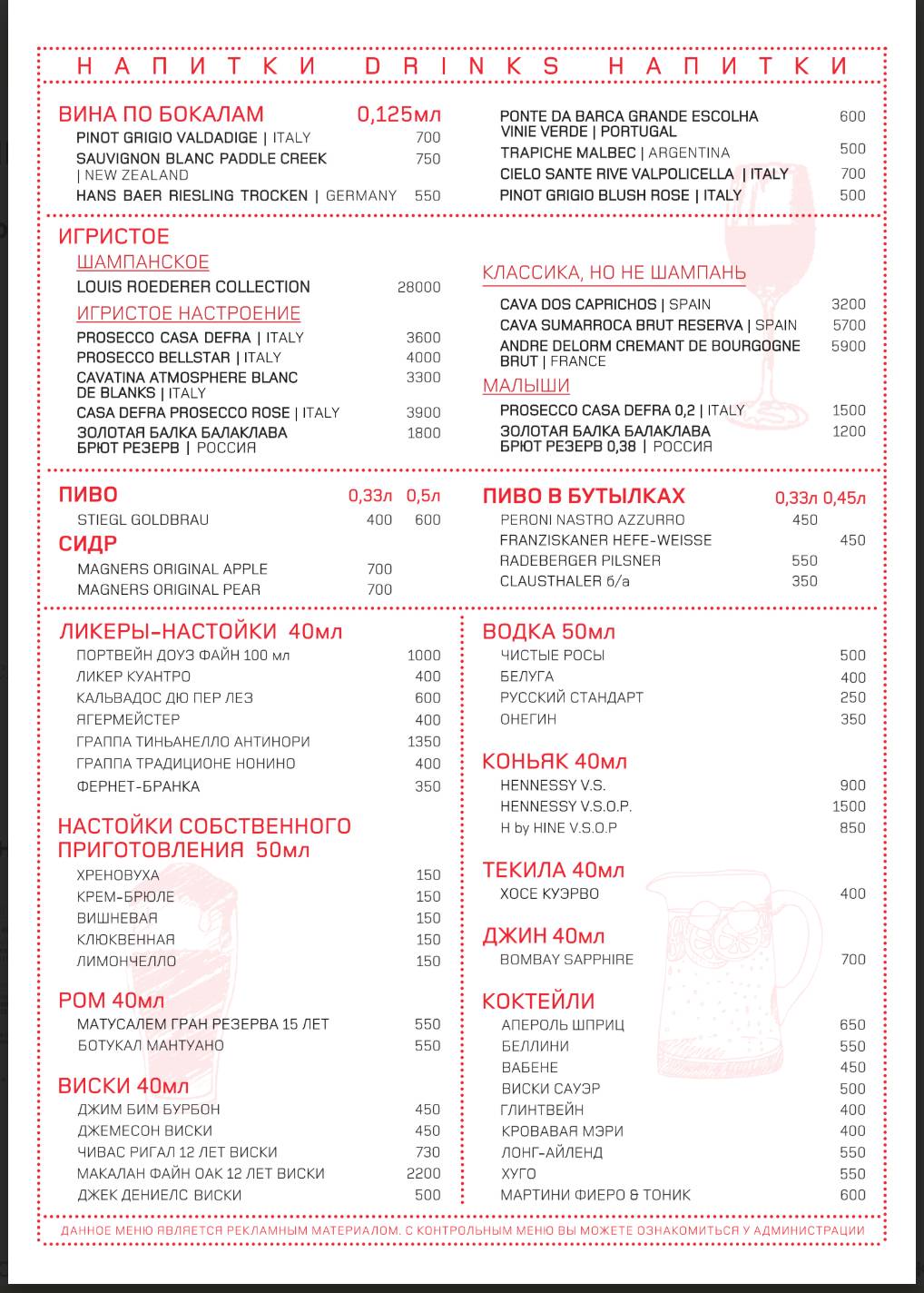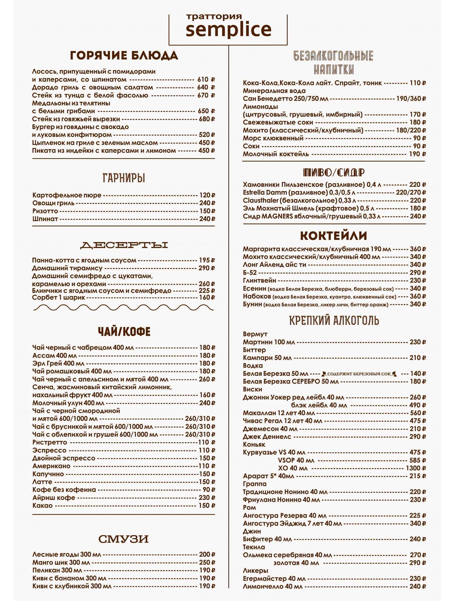 Траттория меню москва