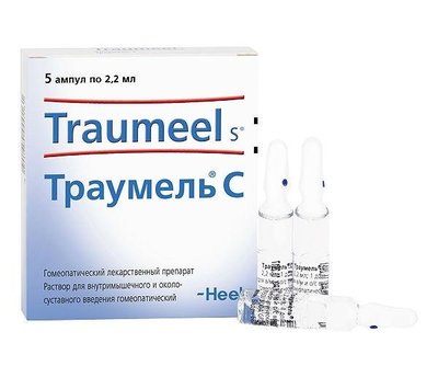 Гомеопатическое лекарственное средство «Траумель» (раствор в ампулах) назначается при травмах, нарушении окислительно-восстановительных процессов, при вывихах, переломах, растяжении, а также для лечения бурсита, артрита, периартрита и т .д .