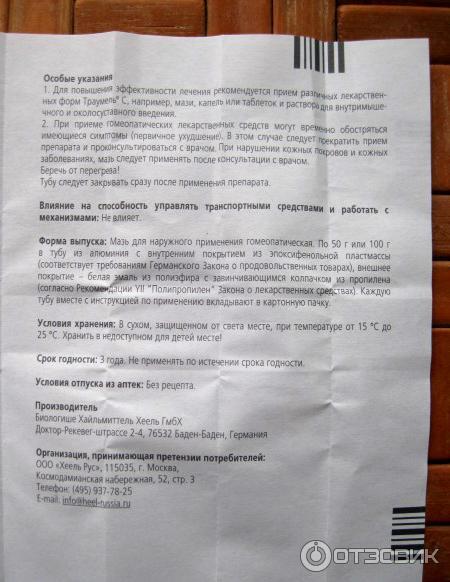 Траумель С (мазь) | Отзывы врачей и пациентов | Инструкция по применению . . .