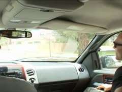Im Auto und im Freien vögelt die blonde deutsche Hausfrau mit den Riesennippeln