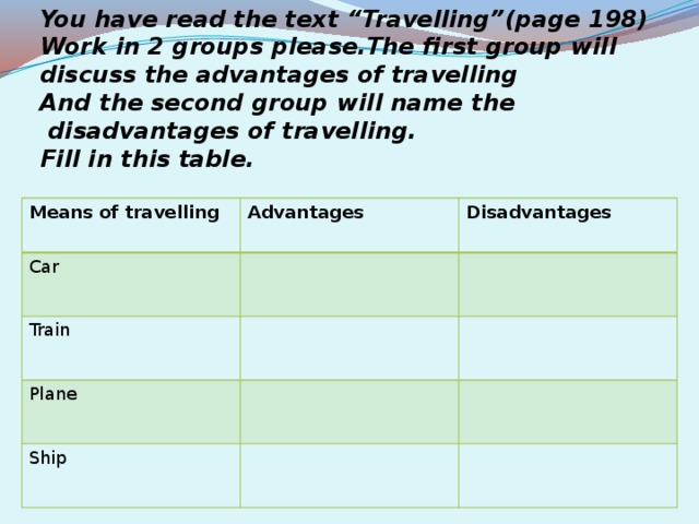 Travelling advantages and disadvantages