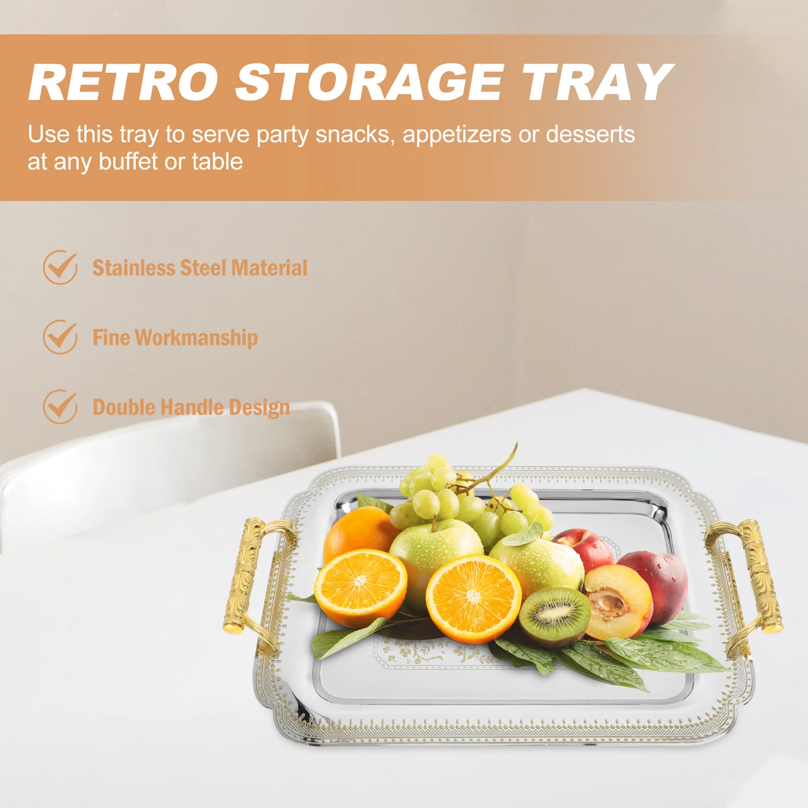 «Tray Serving Plate Platter Metal Coffee Cake Dessert Bread Drinks Fruit Trays Ottoman Stainless Rectangular Gold Breakfast Table» по лучшей цене на рынке! Всего за 20$ (1900рублей)