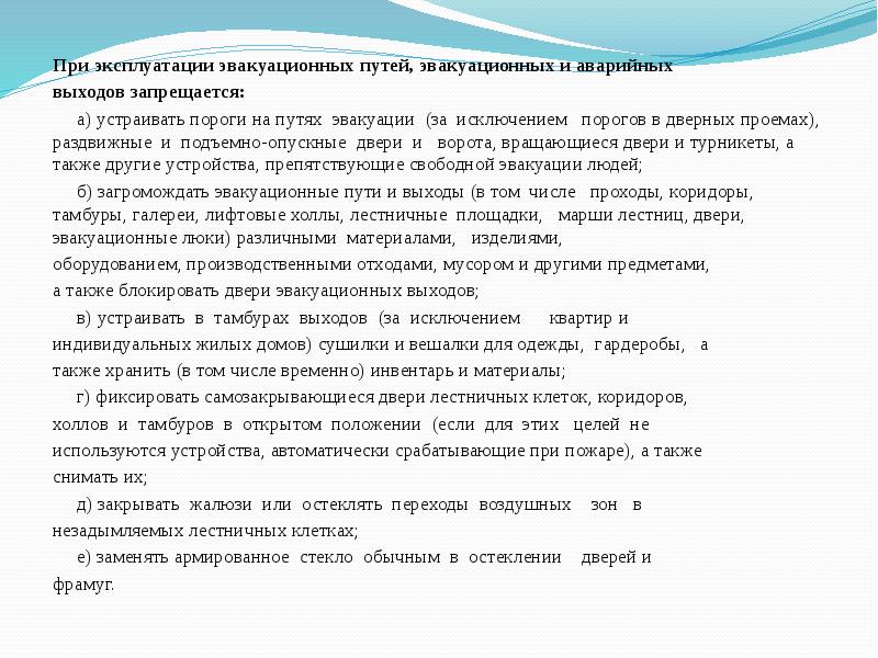 Требование содержания эвакуационных путей