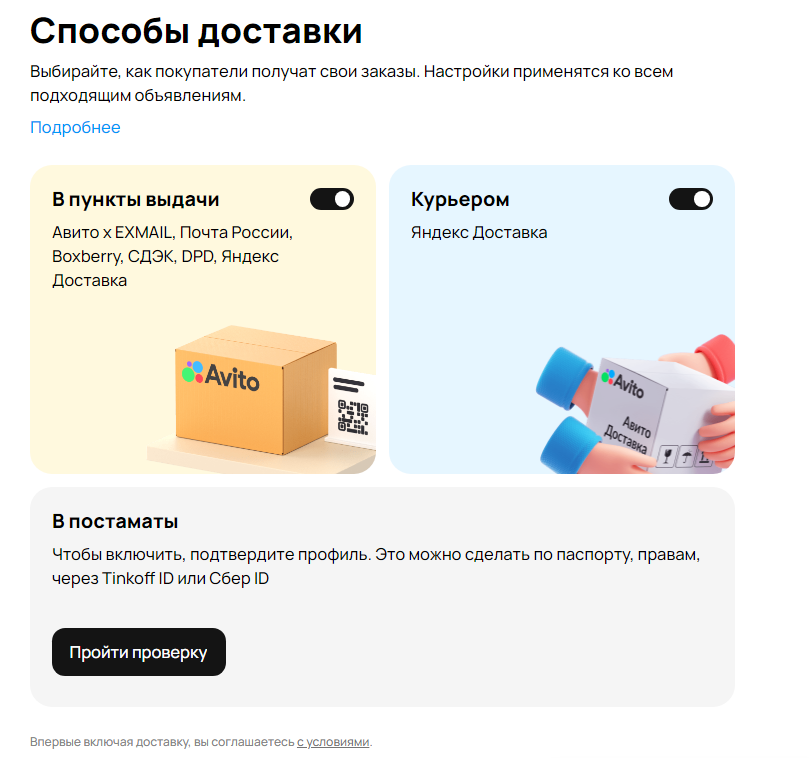 Требования к авито доставке