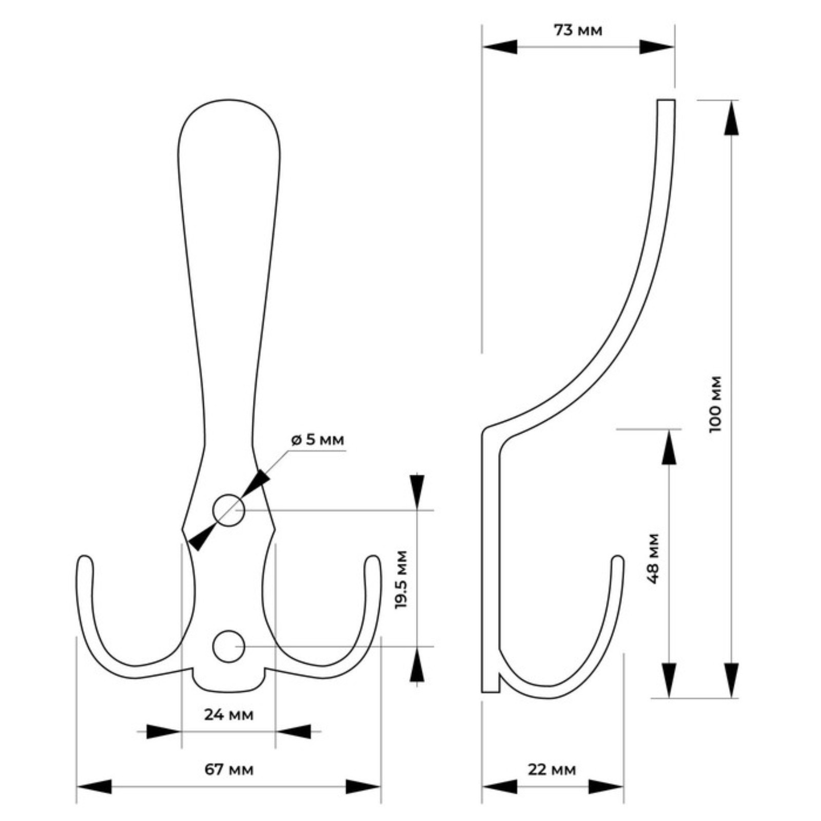 Трехрожковые крючки хром