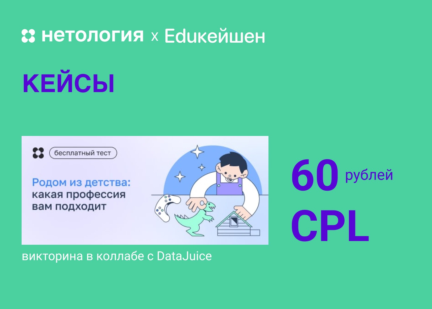 - Викторина вместе с DataJuice. Наш самый лидогенерящий продукт за январь-февраль с CPL 63 и 56 рублей соответственно.