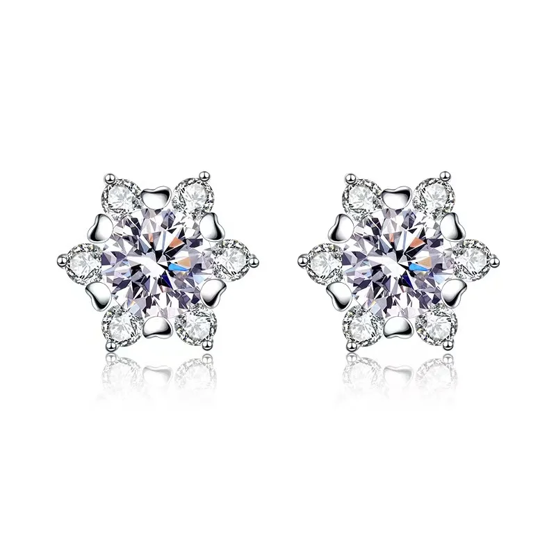 «Trendy D Color Moissanite Diamond Snowflake Earrings Round 925 Sterling Silver 0.5ct Women Cute Stud Earrings Anniversary Gift» по лучшей цене на рынке! Всего за 26$ (2470рублей)