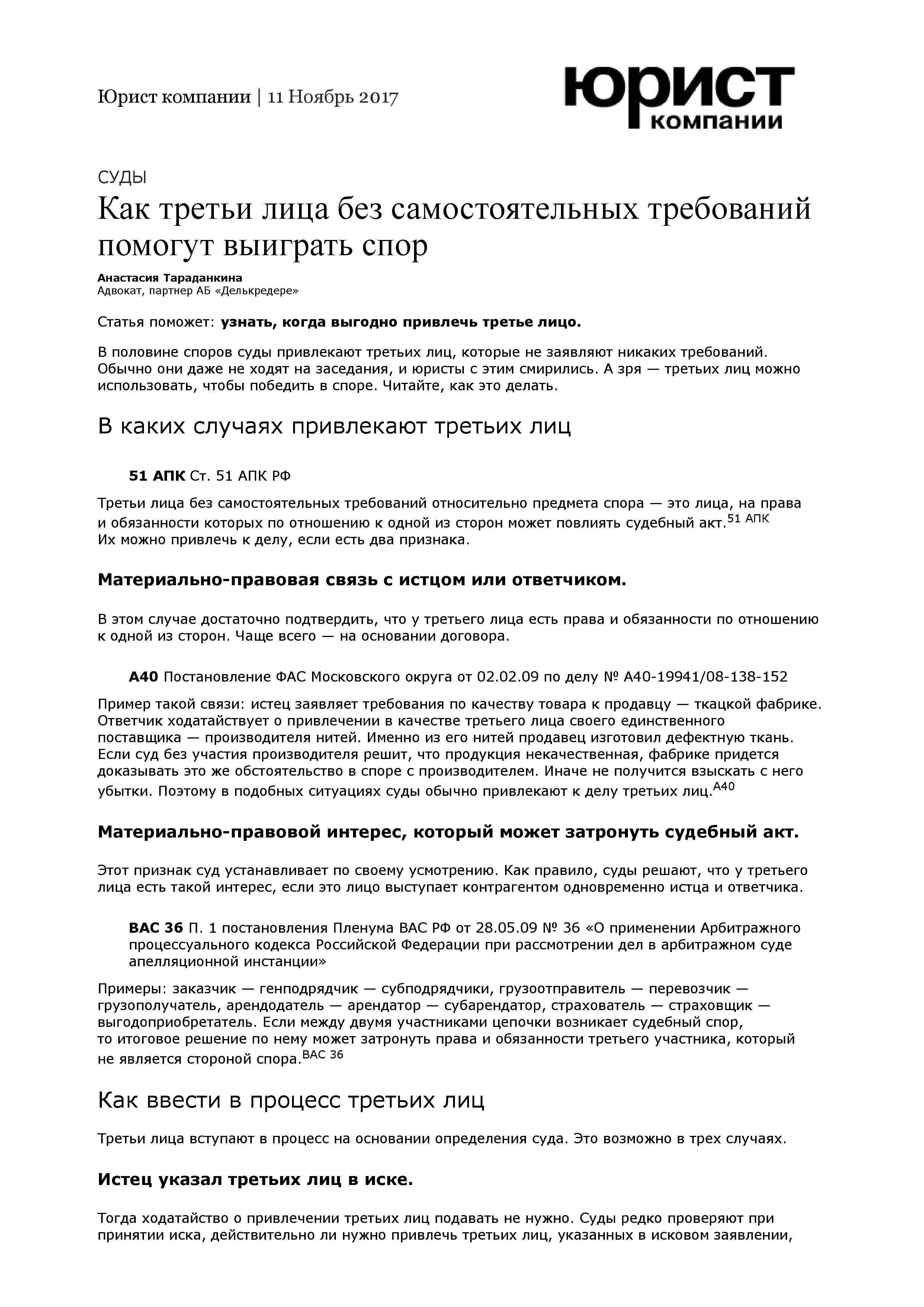 АПК РФ Статья 51 . Третьи лица, не заявляющие . . .