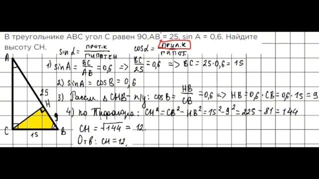 Треугольнике abc угол acb равен 90
