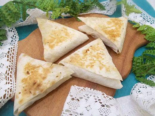 Треугольники из лаваша с яйцом и луком