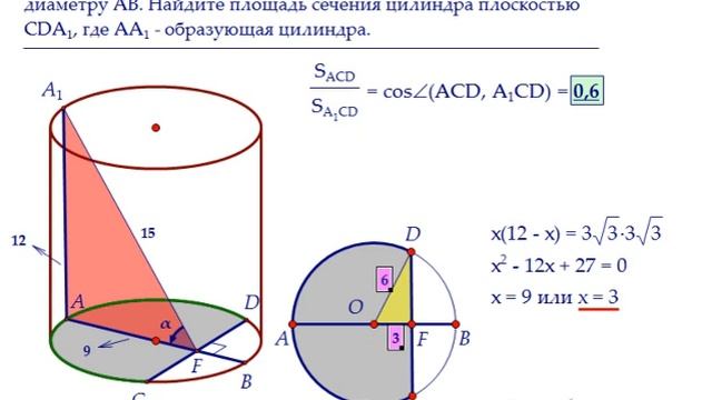 Треугольное сечение цилиндра