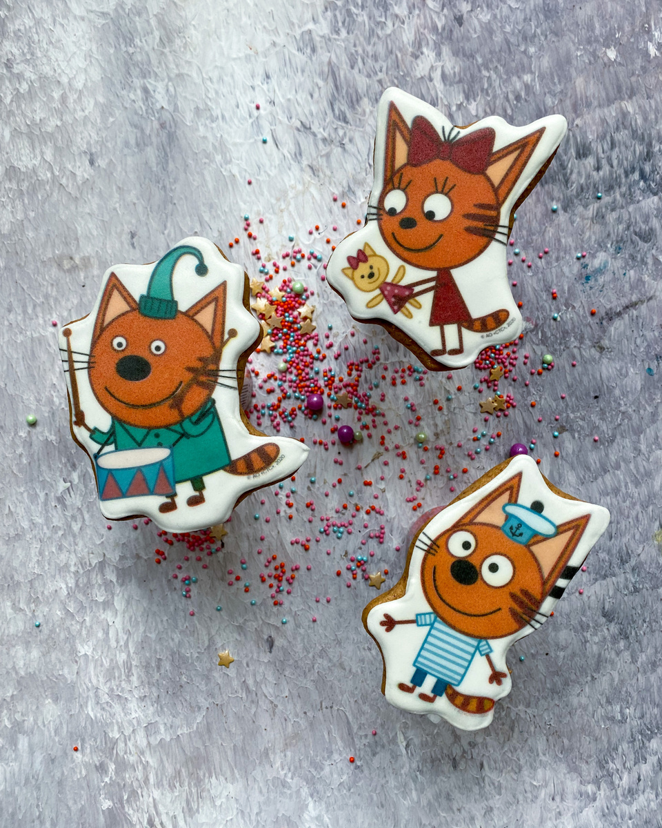 Пряники для торта три кота | Декупаж Ажиотаж