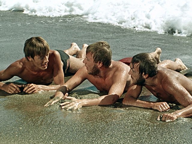 Режиссер: Генрих Оганисян . В ролях: Наталья Кустинская, Наталья Фатеева, Андрей Миронов, Евгений Жариков, Геннадий Нилов . ПАПУ ЛАРИНА ЗАМЕЛИ В МИЛИЦИЮ ЗА ШОРТЫ . Три холостяка захотели пожить "дикарями" на пустынном морском берегу .