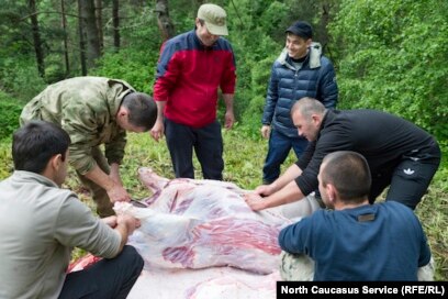 Выполнив эту тяжкую миссию, Бог пролил три слезы . Одна из них упала в Цейском ущелье и стала Рекомом, вторая неподалеку в Ардонском ущелье - Мыкалгабырта, а третья - Таранджелос . Так образовались три главных святилища осетин .