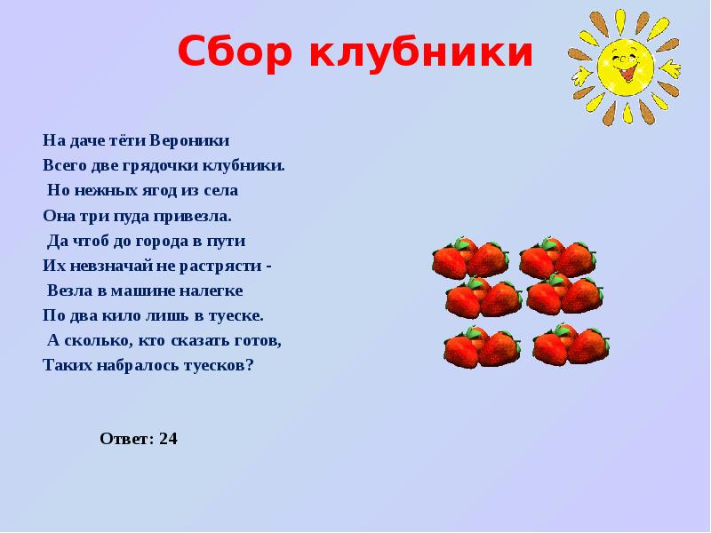 Три девочки собирали клубнику первая собрала 8