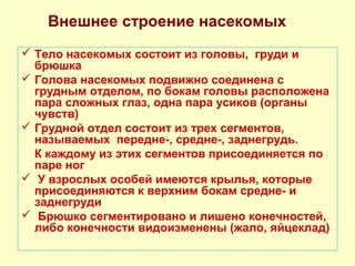 Три отдела тела насекомых