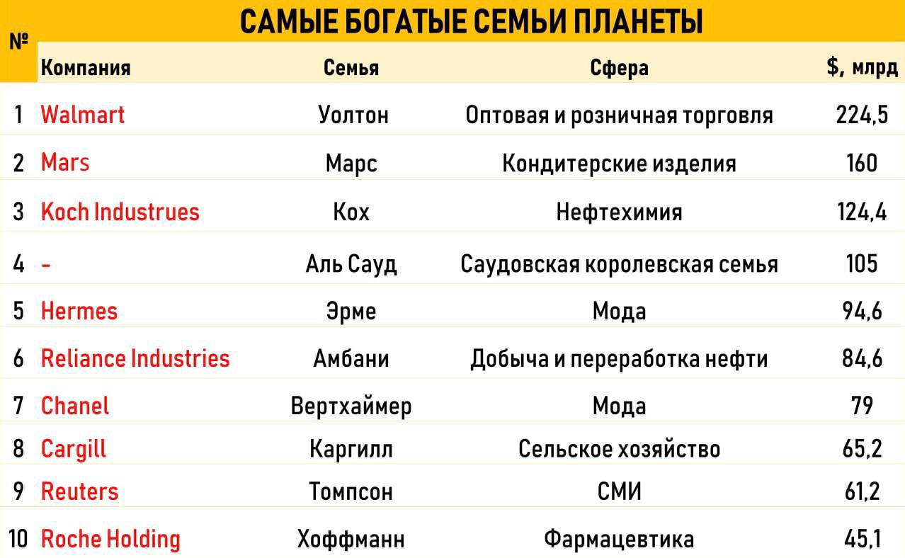Три самые богатые семьи