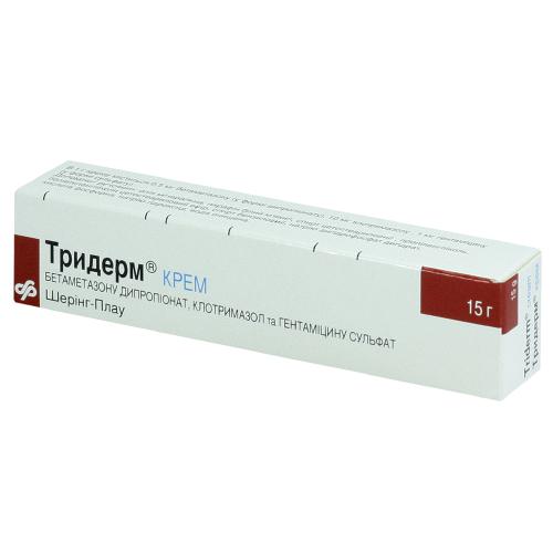 Инструкция по применению лекарственного препарата Тридерм Крем Регистрационный номер П N013502/01 Торговое название препарата Тридерм® . Международное непатентованное или группировочное наименование Бетаметазон + Гентамицин + Клотримазол . Лекарственная форма Крем для наружного применения . Код АТХ D07XC01 Состав Описание Фармакотерапевтическая группа