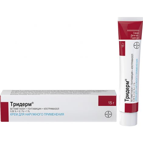Тридерм мазь является препаратом из нескольких действующих компонентов (бетаметазон, гентамицин, клотримазол), эффективна при различных воспалительных, грибковых и бактериальных поражениях кожи . Мазь и крем наносятся на участок кожи тонким слоем, следует избегать длительного лечения на большой площади, чтобы не спровоцировать побочных реакций .