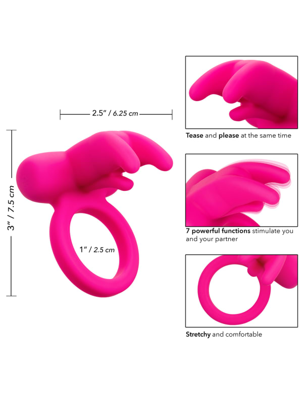 Cock Rings by Cal Exotics at simplipleasures .com - 100% Discreet FREE Shipping - Read Penis Ring product reviews, ' This erotically shaped vibrating p β¦ The Triple Clit Flicker Ring provides superstar enhancement for him and orgasmic sensations for her! The wide, snug jelly-rubber ring keeps him rock-hard and delays his ejaculation, and it . . .