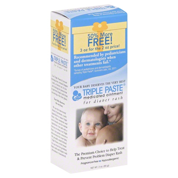 Triple Paste Diaper Rash Ointment is the premium choice to help treat and prevent diaper rash . The fragrance-free, hypoallergenic formula stays in place when applied, creating a protective barrier for tender skin .