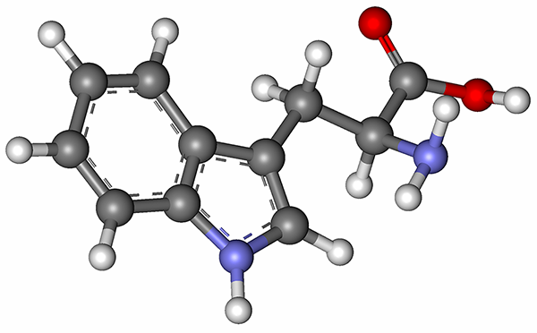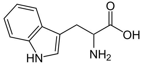 Триптофан это протеиногенная кислота, которая входит практически во все живые организмы . Характерной особенностью является то, что она содержит индольное ароматическое кольцо . Триптофан является незаменимой кислотой, то есть ее синтез организмом не производится, и поэтому она должна поступать только с внешними продуктами .