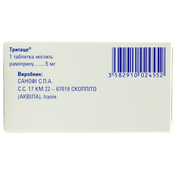 Инструкция ТРИТАЦЕ (TRITACE) Код ATX: C09AA05 . Компания: САНОФИ-АВЕНТИС ГРУП . SANOFI-AVENTIS Deutschland, GmbH . Срок годности и условия хранения: Список Б .