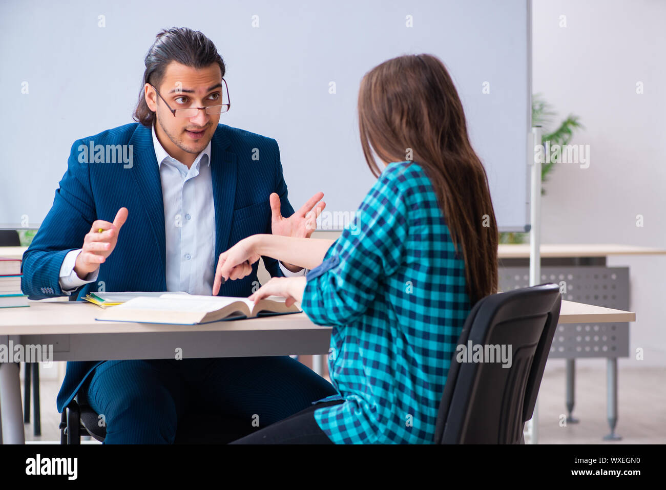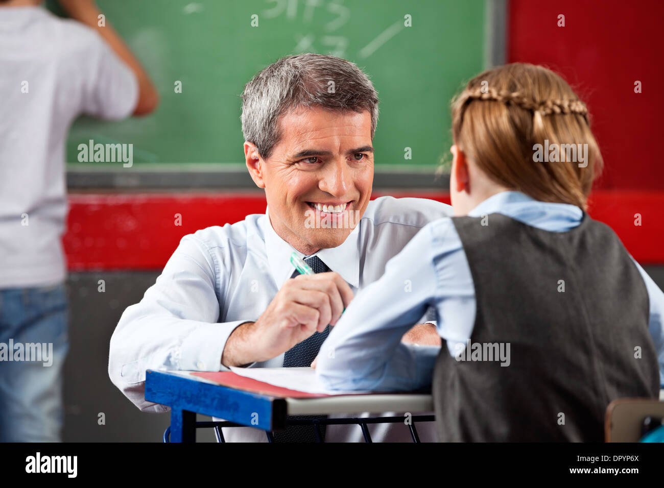 Трогает ученицу
