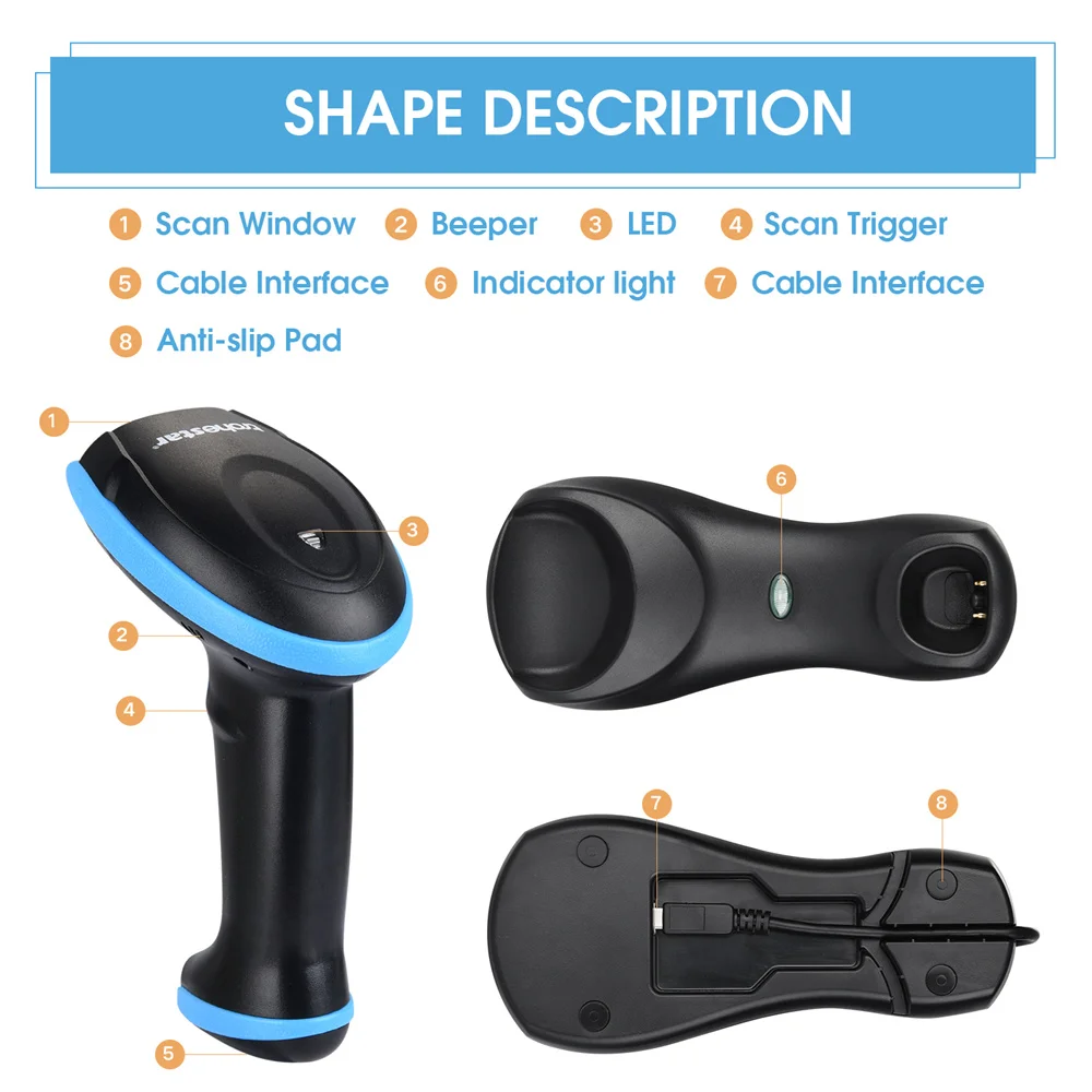 Trohestar Wireless Barcode Scanner 2.4GHz1D 2D Bar Code Reader USB Scanners Charging Cradle leitor de codigo de barra 2D Scanner - Купить с бесплатной доставкой