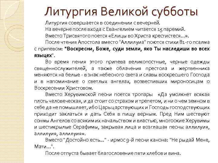 Тропарь великой субботы читать