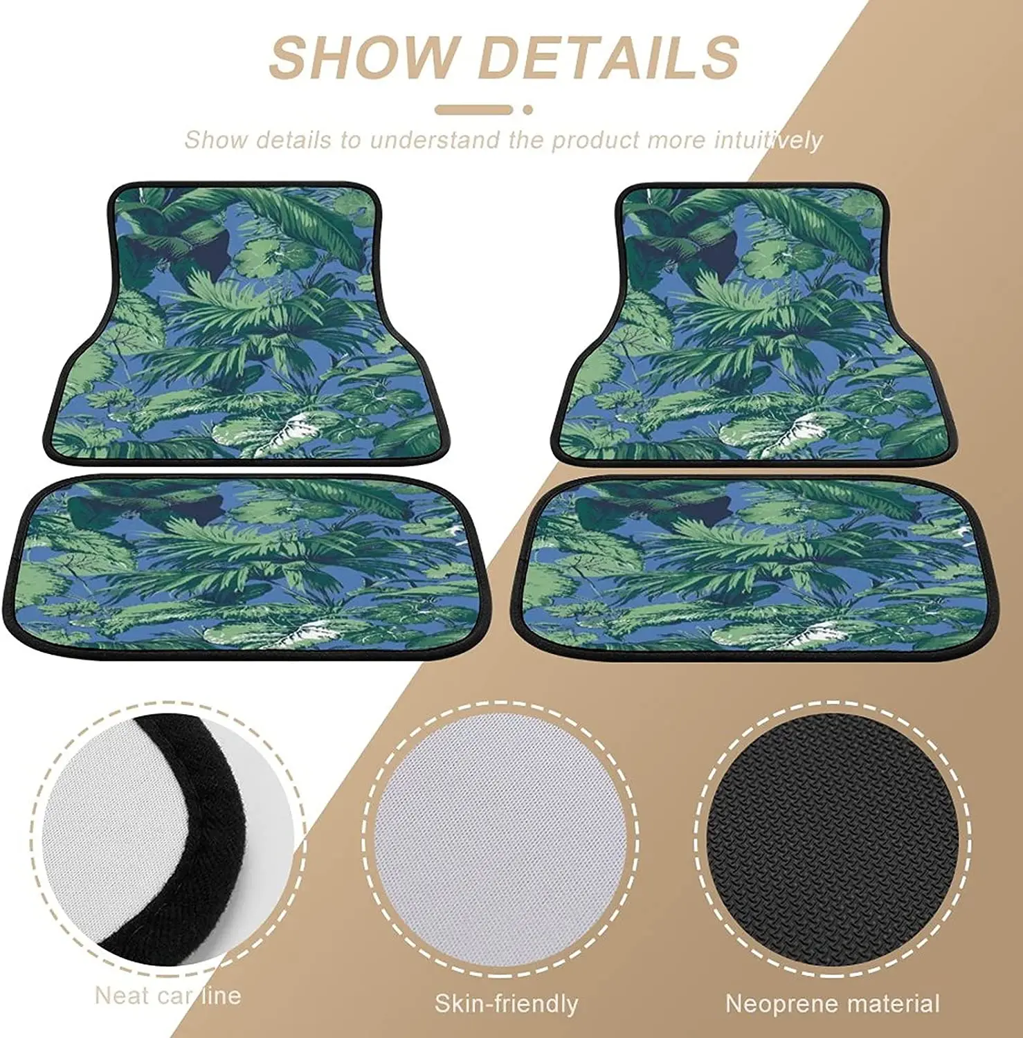 «Tropical Botanical Print Green Leaves Car Mats Front&Rear 4-Piece Full Set Carpet Car SUV Truck Floor Mats with Non Slip Back» по лучшей цене на рынке! Всего за 20$ (1900рублей)