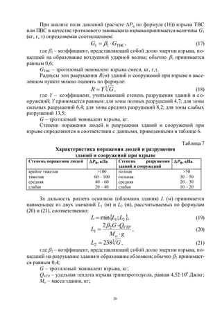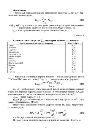 Тротиловый эквивалент взрыва парогазовой среды обозначают и т и вычисляют по аналогии со взрывами легковоспламеняющихся парогазовых облаков и конденсированных взрывчатых веществ по формулам