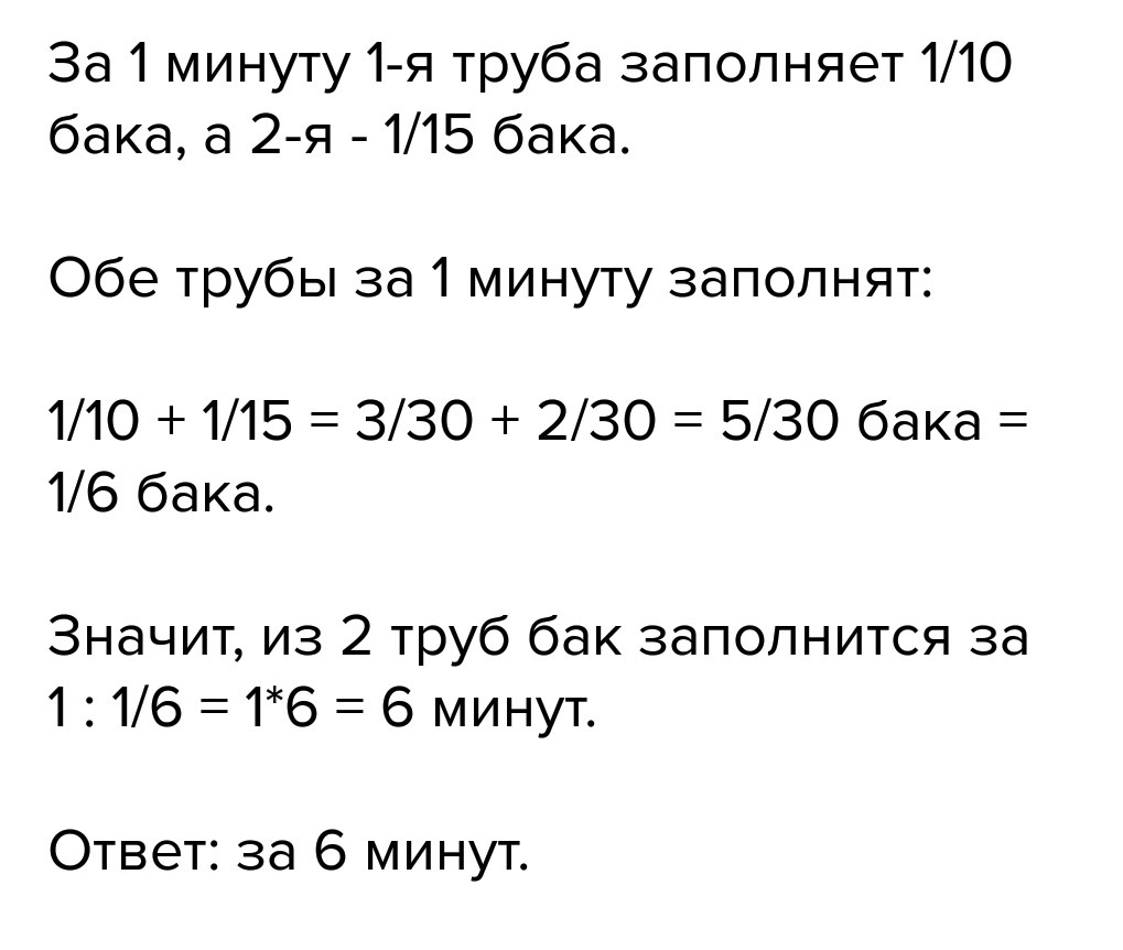 Труба заполняет бак объемом