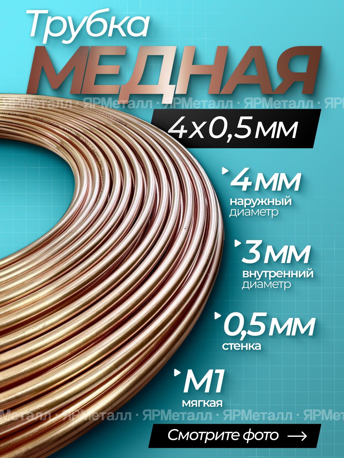 Трубка медная 1м 106 фото