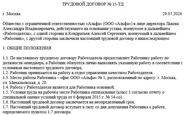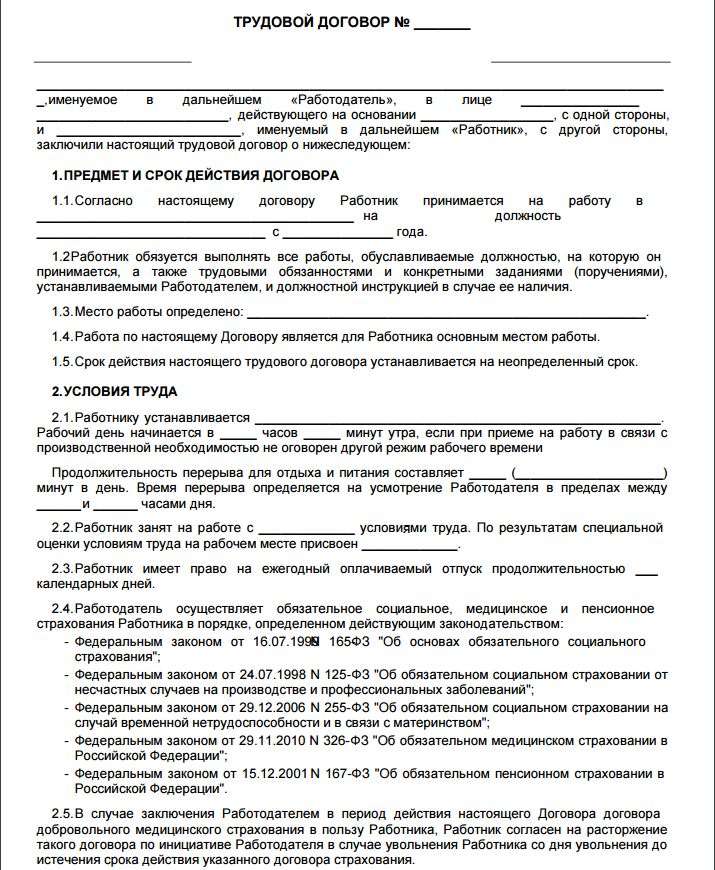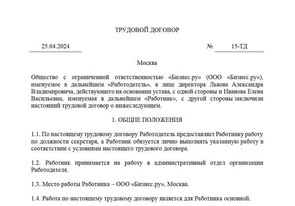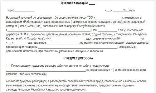 Трудовое соглашение шаблон