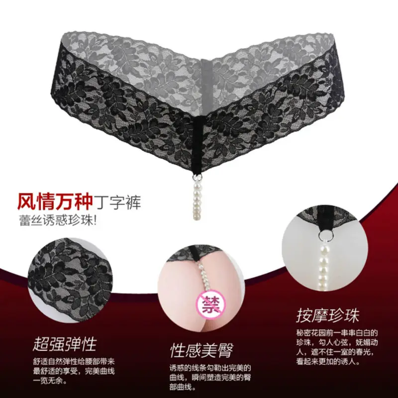 Соблазнительные кружевные трусики-стринги с бусинками
