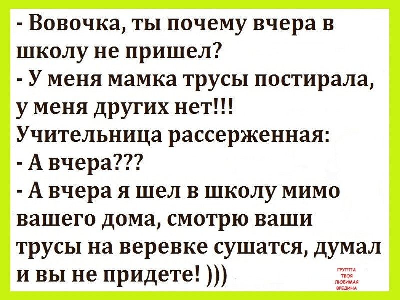 И самое главно, что онане описалась, а просто подмочила . Объясняет это маме тем, что с уроков ее не отпускают (говорят что надо было раньше идти!), а на перемене некогда …