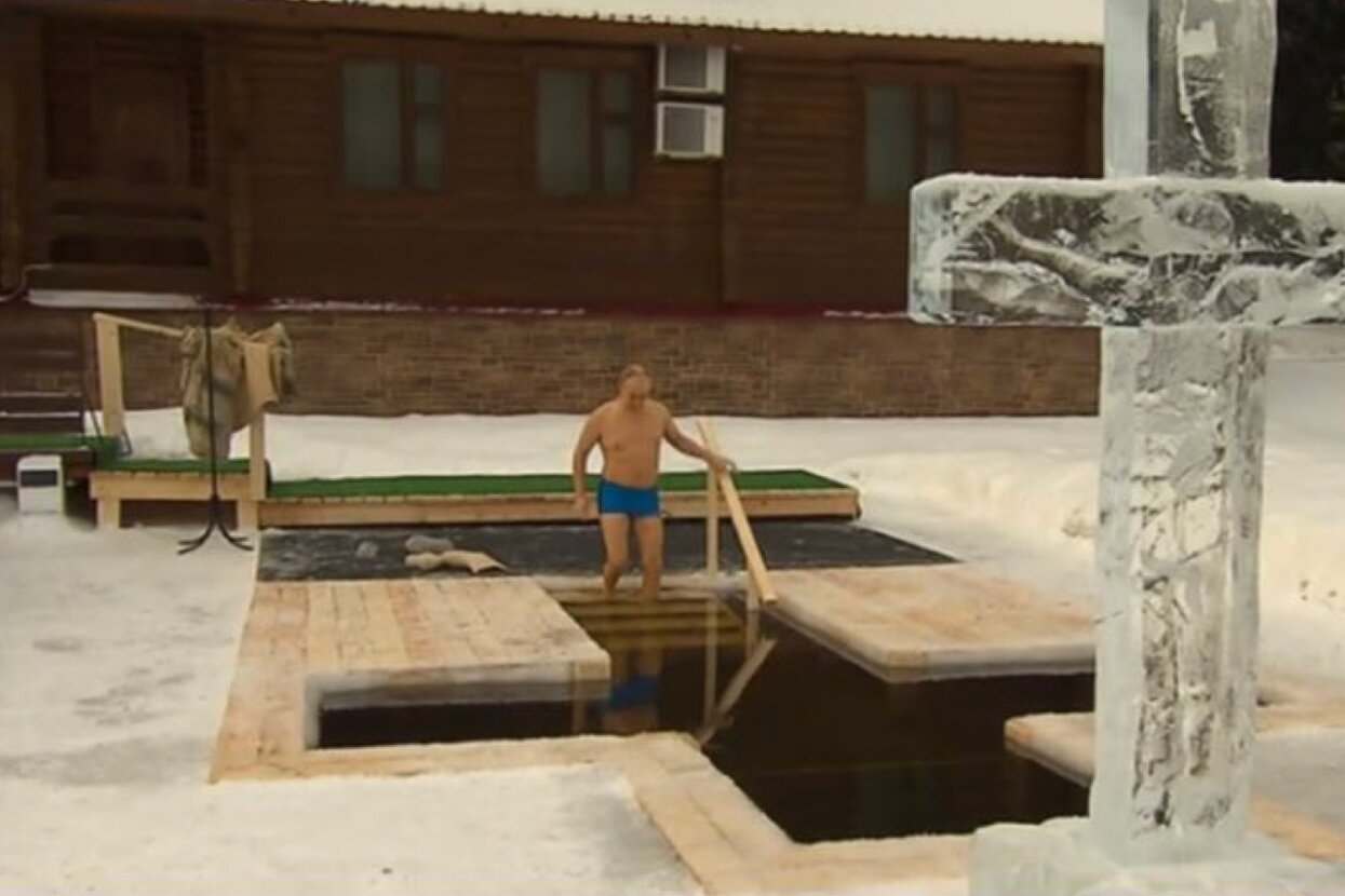 Путин искупался в проруби в "трусах Навального" - фото — УНИАН